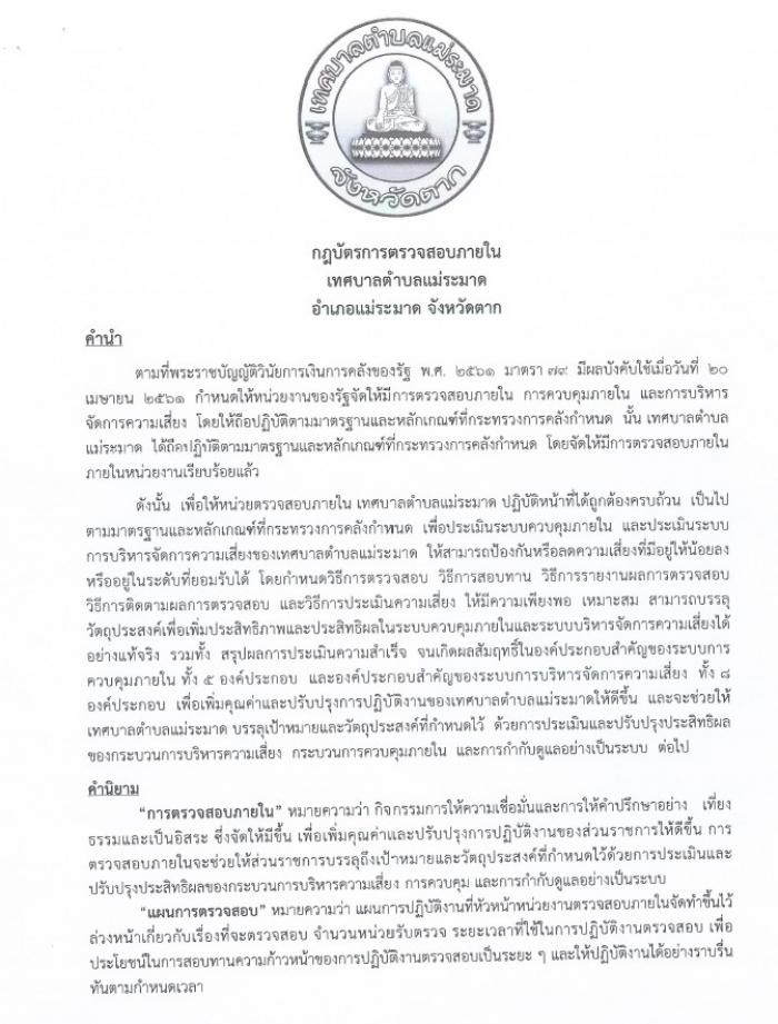 กฎบัตรการตรวจสอบภายในเทศบาลตำบลแม่ระมาด ปี 2569